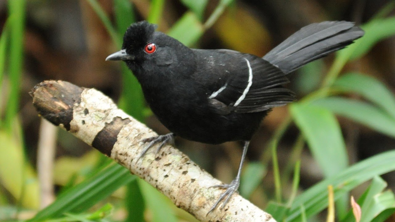 Tem cerca de 17 centímetros. O macho é negro reluzente, com olhos vermelhos. Tem duas barras alvas sobre a asa e com área dorsal branca oculta. A fêmea …