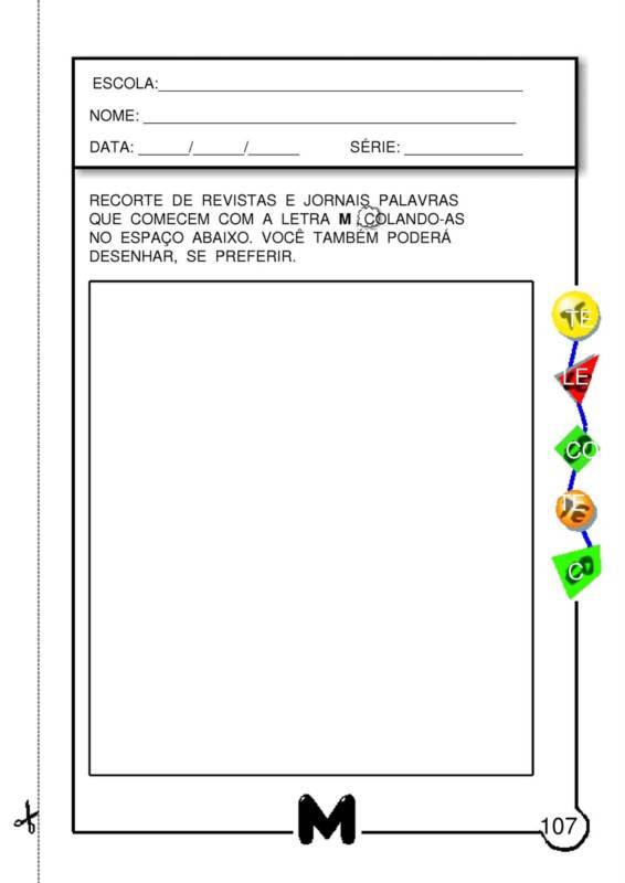 Recorte de revistas e jornais palavras que comecem com a letra m