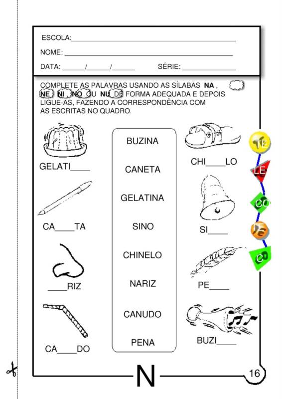 Complete as palavras com a consoante N
