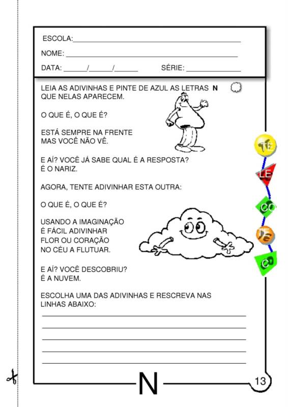 Leia as adivinhas e pinte de azul as letras N que nelas aparecem