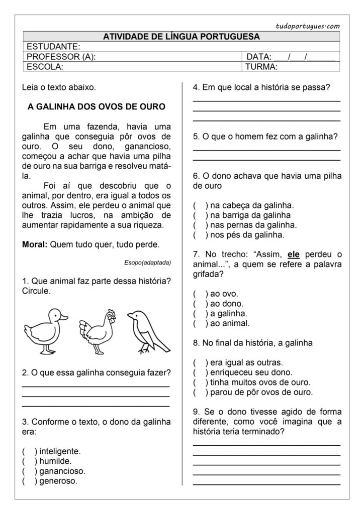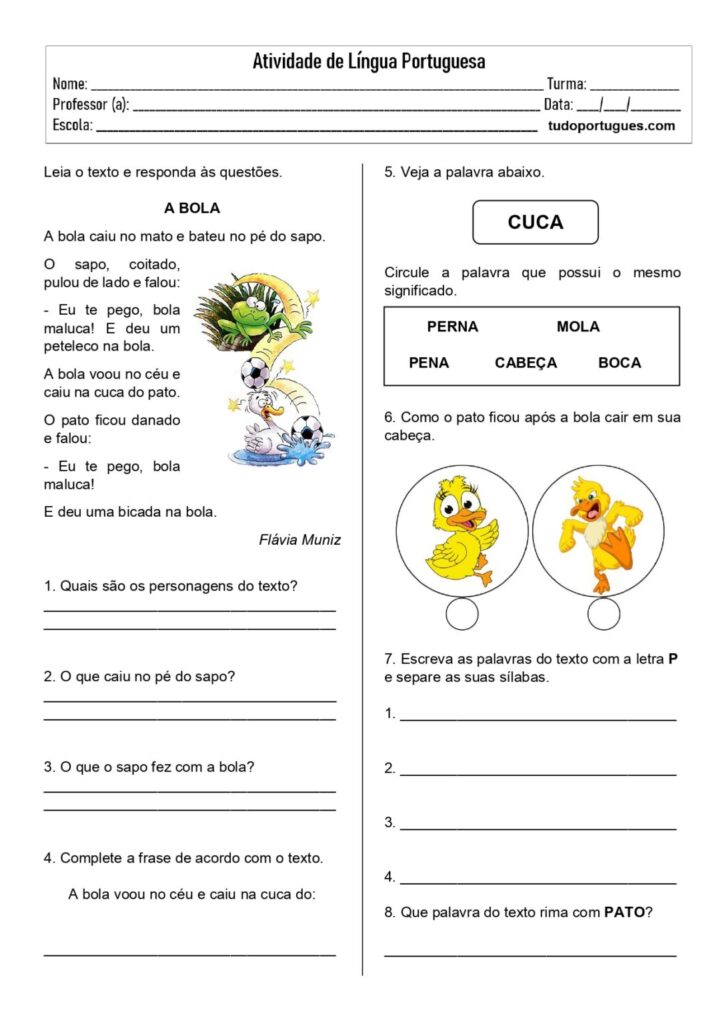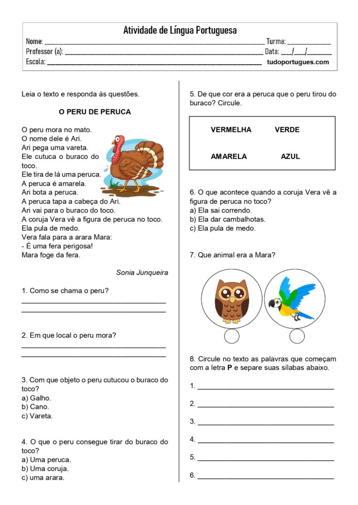 Exemplos de atividades de interpretação de texto para o 2º ano
