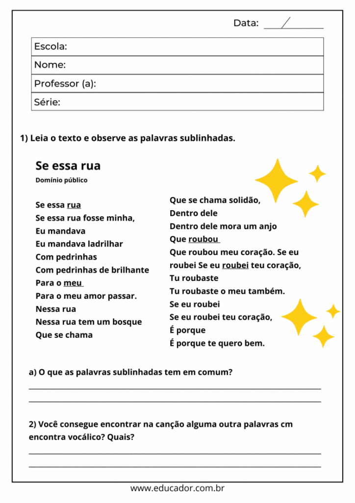 Ao longo do texto, você encontrará ideias detalhadas de atividades prontas para imprimir, modelos de exercícios, sugestões de avaliação e orientações para adaptação conforme o nível da turma.