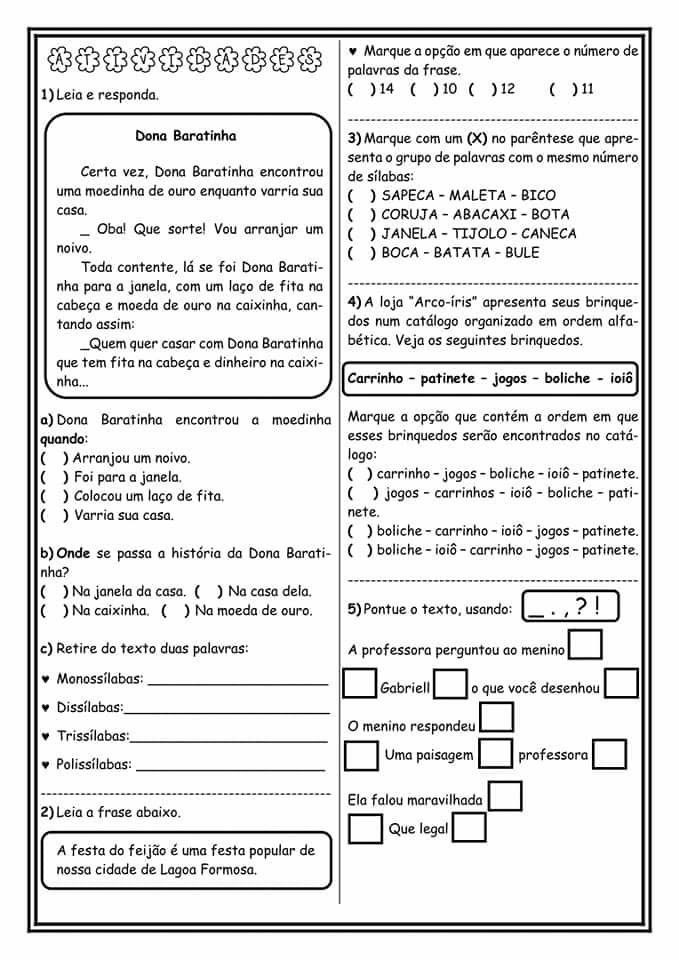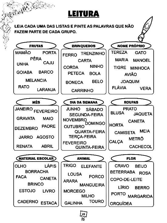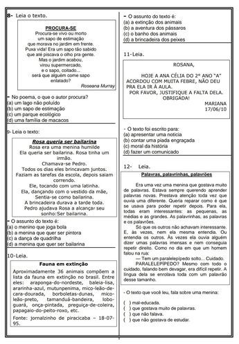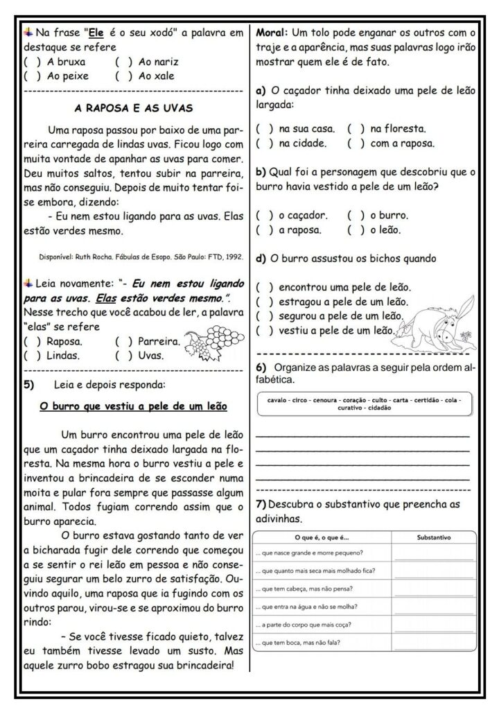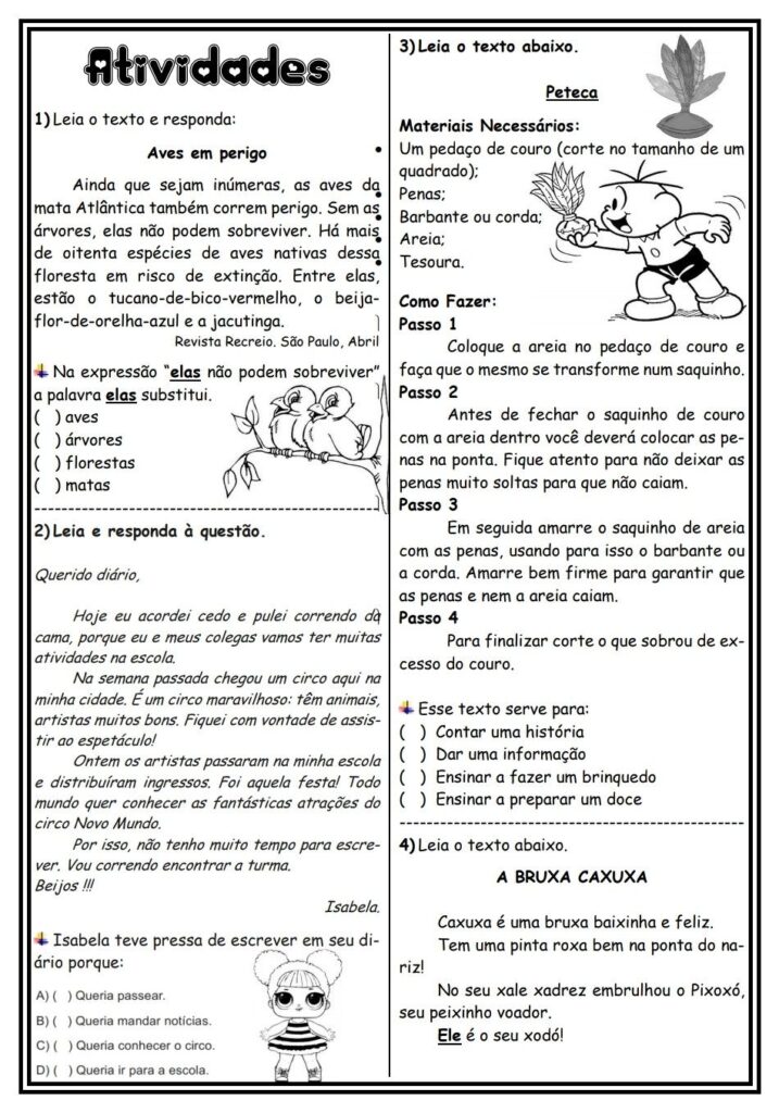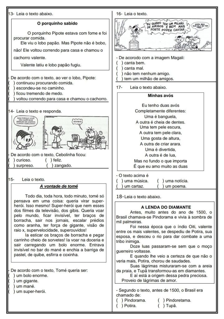 - Exercícios de leitura, interpretação e gramática