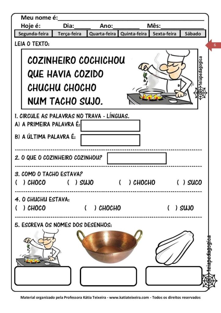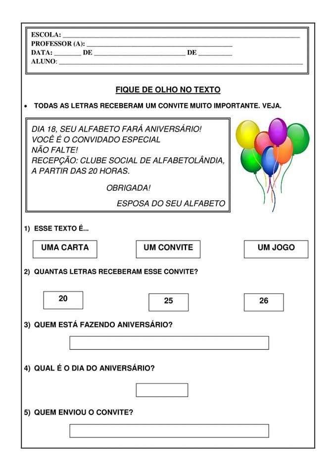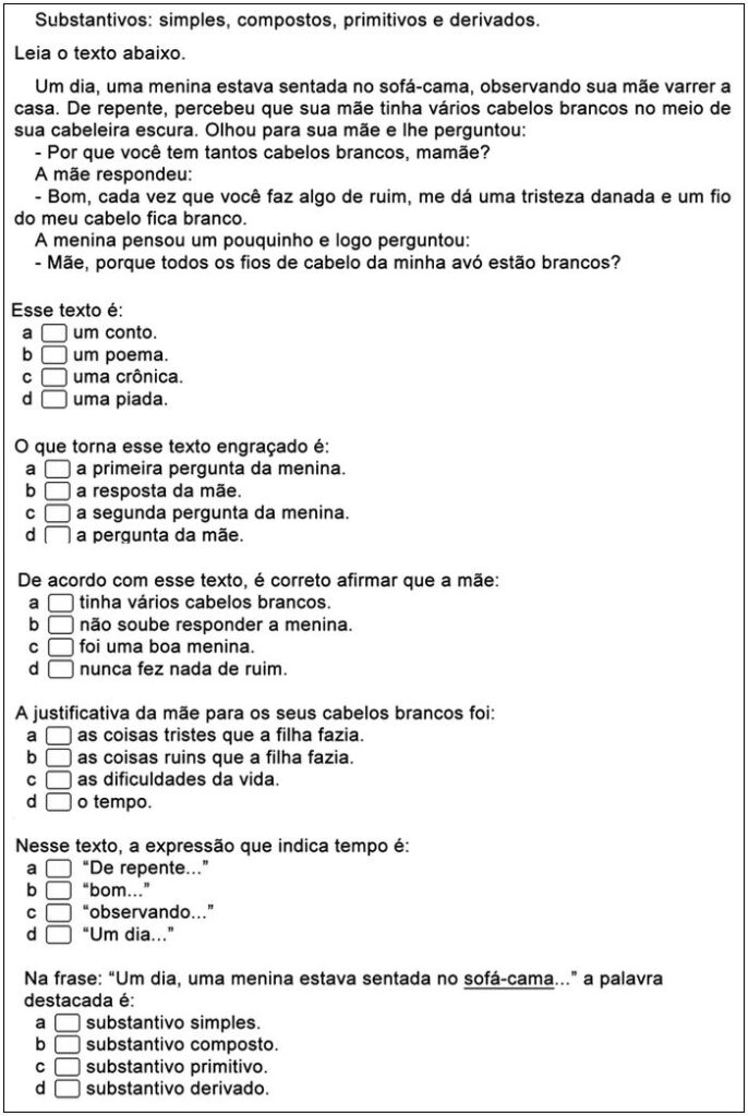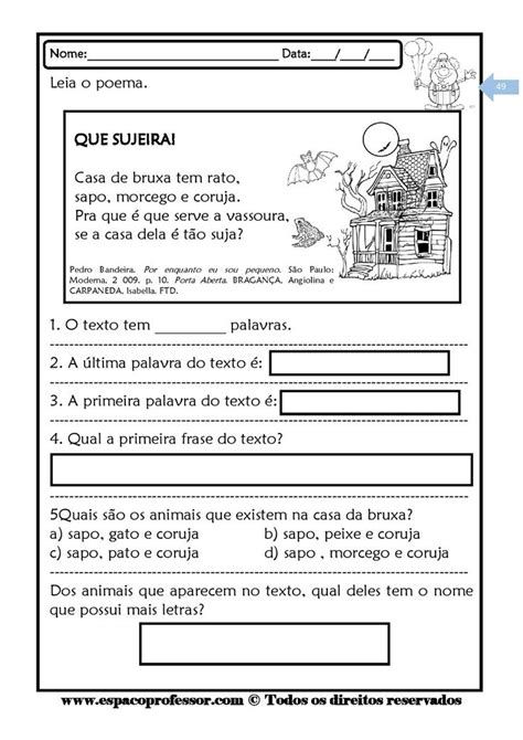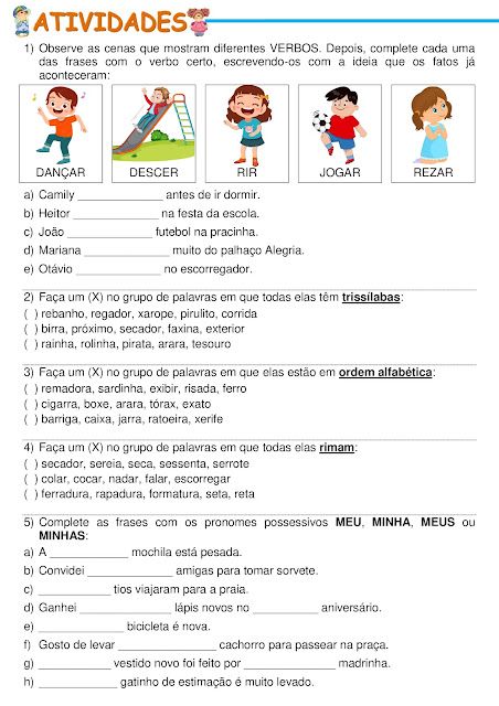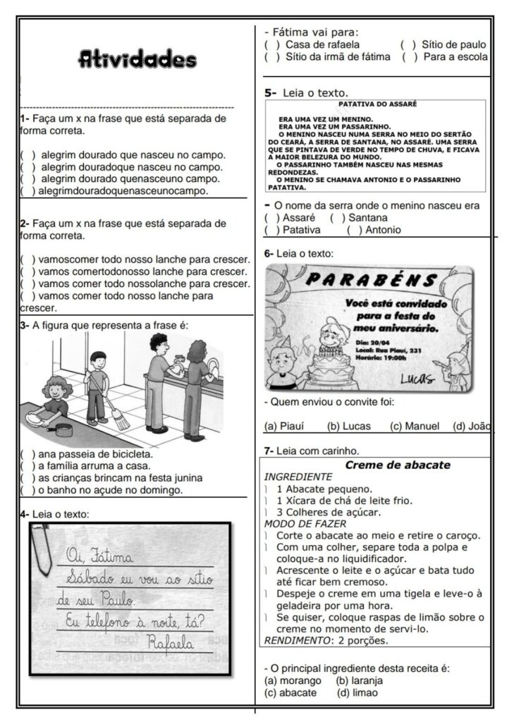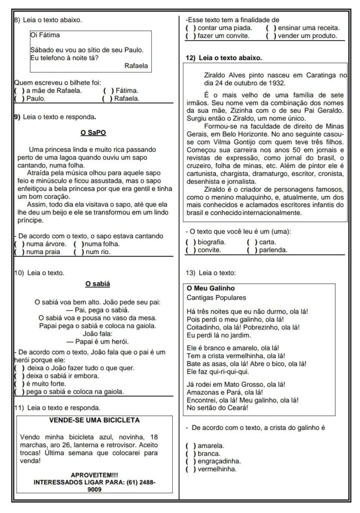 - Exercícios de leitura, interpretação e gramática